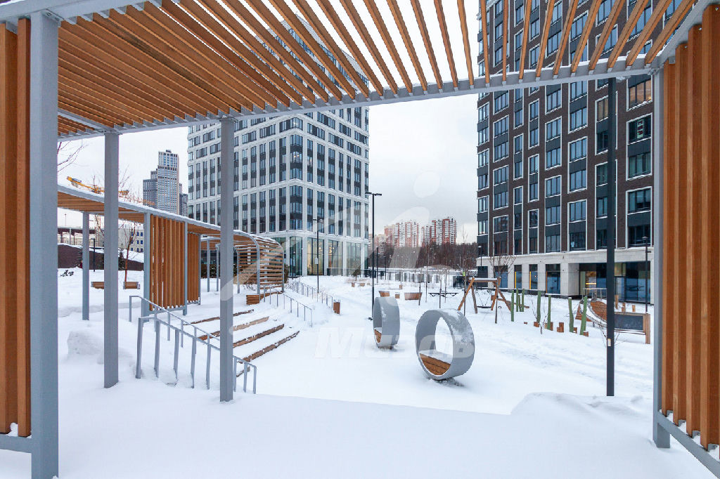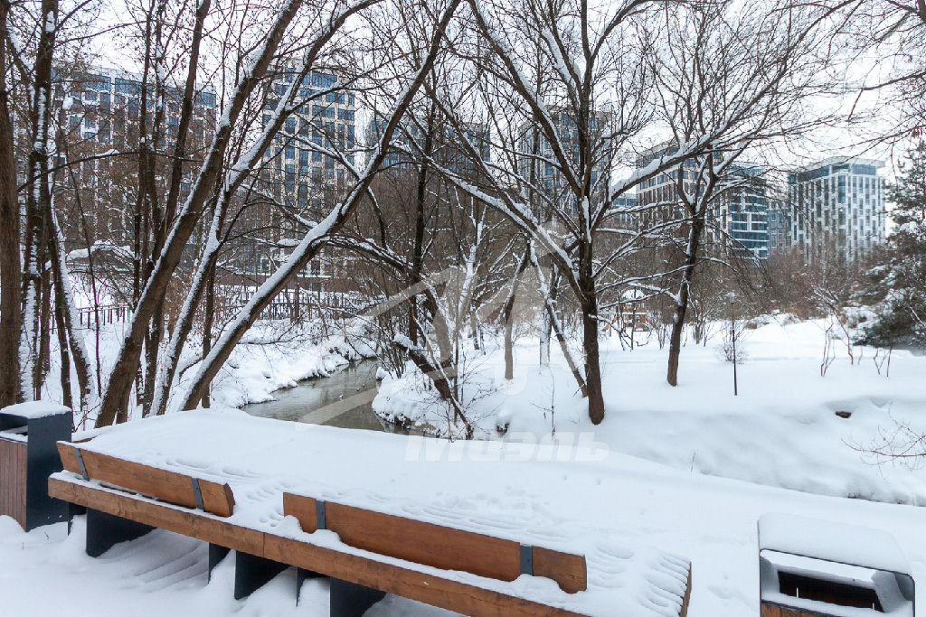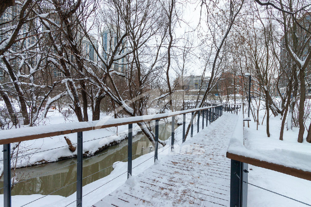 Территория, с пешеходными дорожками и своей набережной у реки Раменки для прогулок.